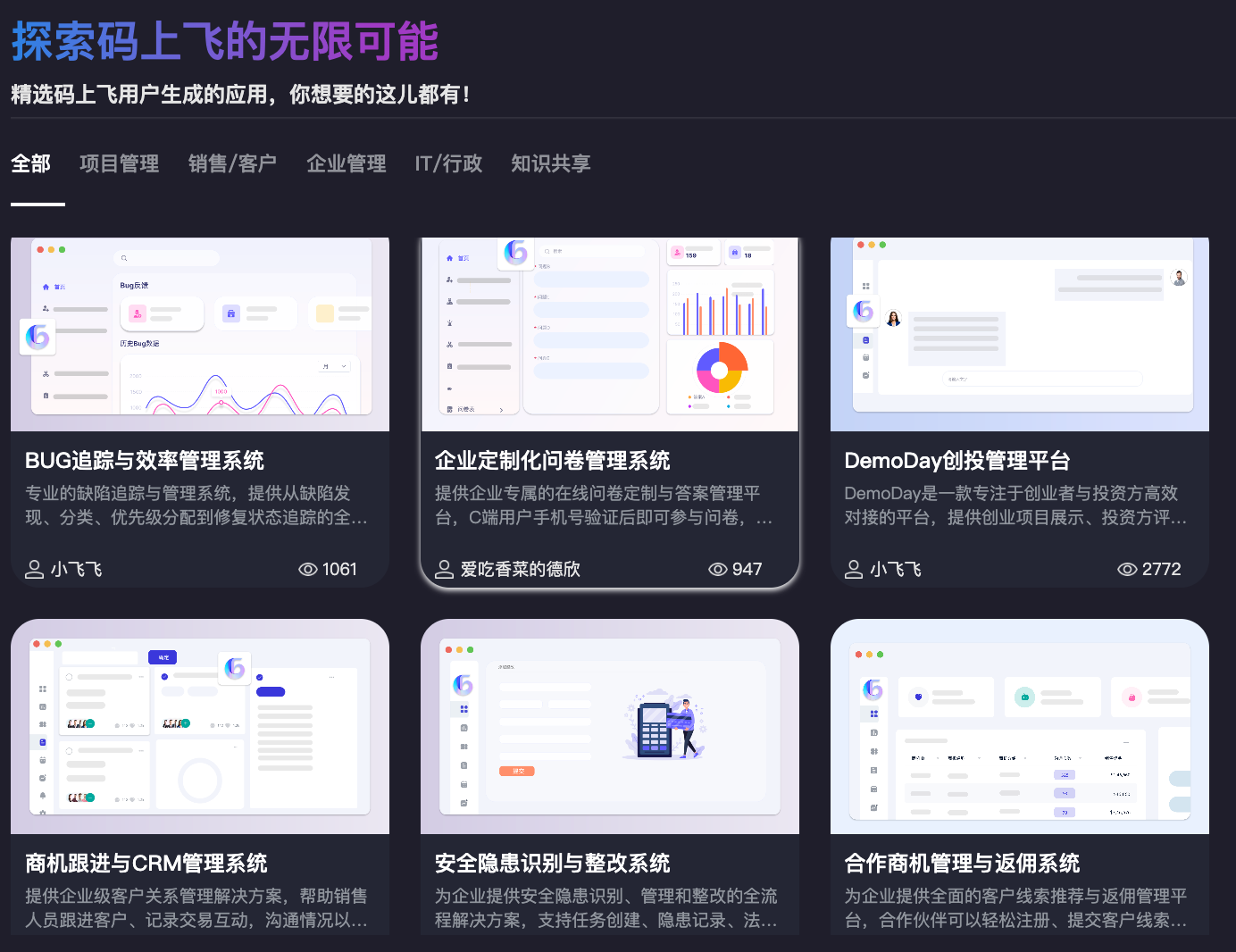 碼上飛是國內首發的“文生軟件”平臺,一句話生成1個APP。碼上飛能夠快速解析用戶發送的文字需求并直接生成出端到端的應用程序和AI智能體應用,供用戶在線預覽、體驗以及修改。同時支持一鍵下載應用的「桌面應用安裝包」以及「應用文檔及源代碼」甚至包括配套「計算機軟著申請材料」。