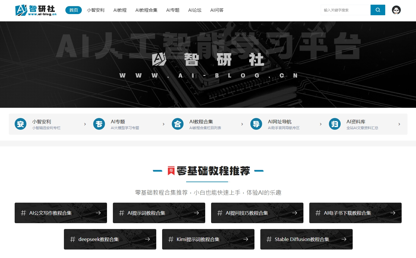 AI智研社人工智能學習平臺,專注人工智能領域的綜合性AI學習平臺、AI教程網,為您提供全面且深入的AI教程與資訊。包含AI助手、AI教程、AI寫作、AI繪畫、AI視頻、AI配音、AI導航、AI電子書下載、AI大模型等領域資源,滿足從入門到高階的學習需求。我們致力于打造集知識學習、技術探索與實踐應用于一體的資源寶庫,助您輕松掌握AI技能,緊跟科技前沿。搜索“AI智研社”,開啟智能未來之旅!